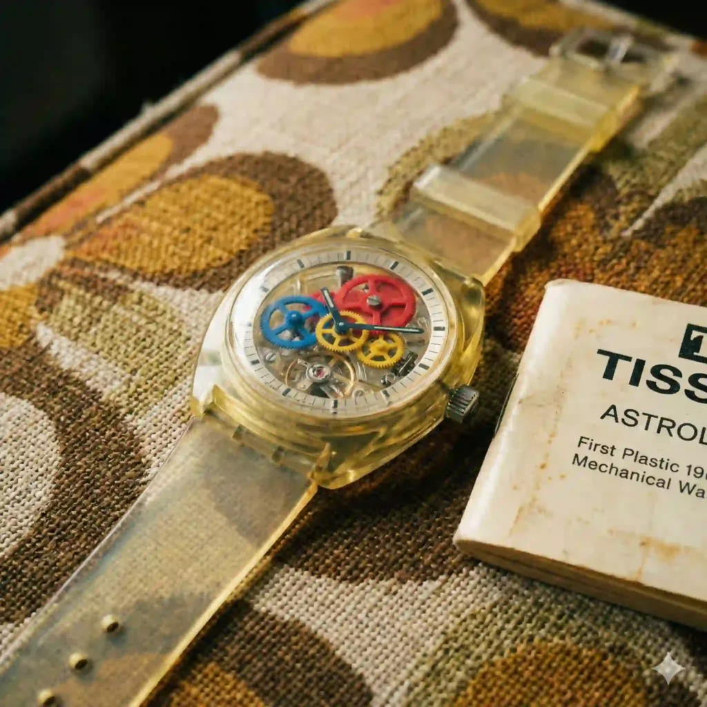 In 1971, Tissot released the Astrolon, the world’s first plastic mechanical watch. It was a radical experiment during the Quartz Crisis that actually laid the technological groundwork for the Swatch Group’s later success.